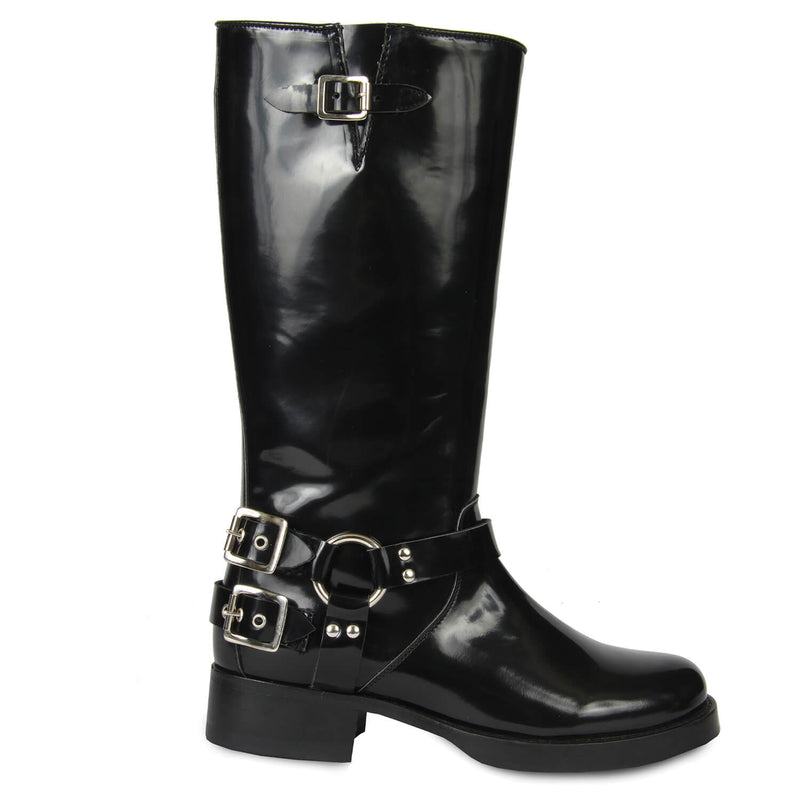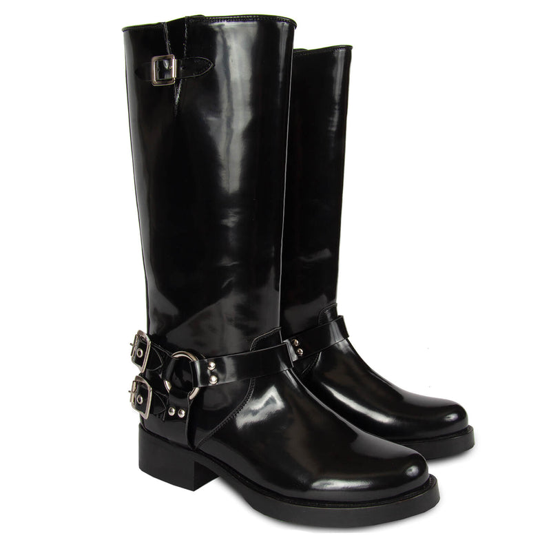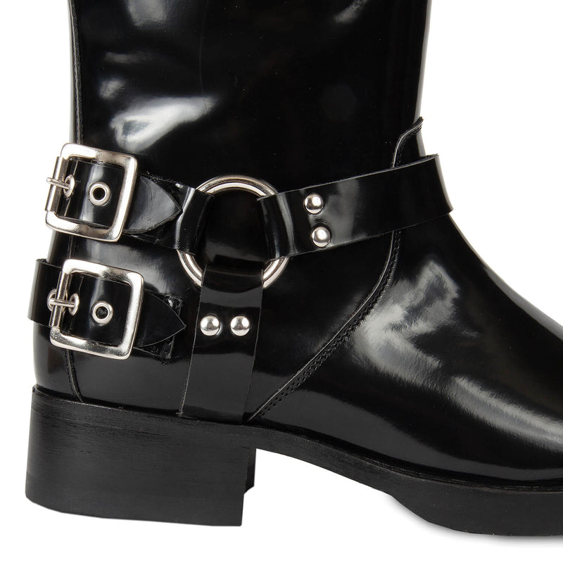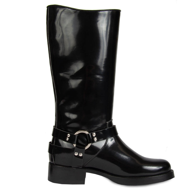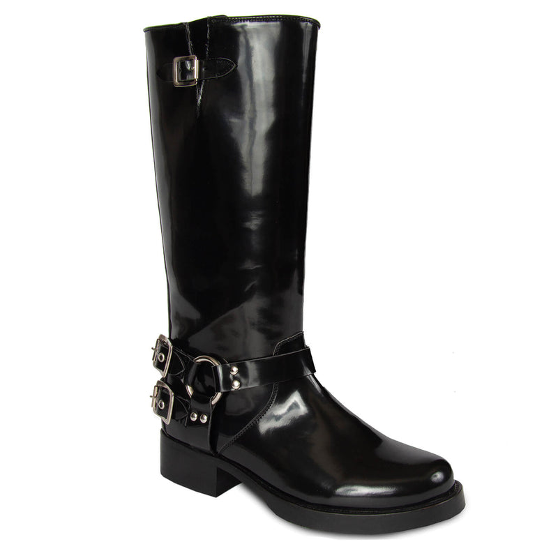 This baddass biker boots are the perfect shoe to pull over leggings and slim-fitting pant, because they have extra wiggle room around the calf. Be sure to stand out with this timeless look